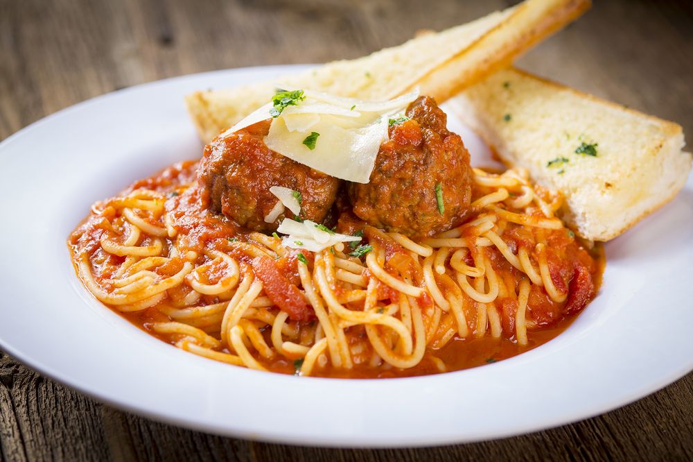 (1410 cal) Traditional Spaghetti with marinara sauce served with homemade meatballs from the family recipe, topped with shaved Asiago cheese & fresh parsley