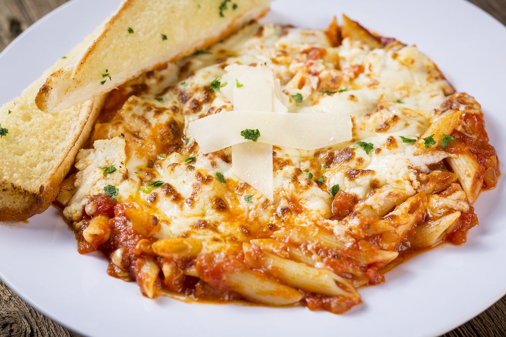 (1630 cal) Breaded chicken breast baked with marinara sauce, topped with baked mozzarella cheese, shaved Asiago cheese & fresh parsley
