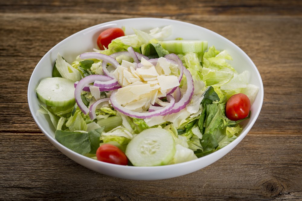 (180 cal) Romaine & spinach leaves, cucumbers, grape tomatoes, red onion & shaved Asiago cheese